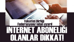 | Tüketici Birliği Federasyonu, internet aboneliği konusunda tüketicileri uyardı. Tüketicilerin son zamanlarda internet aboneliği için arandığını ve bu konuda çok fazla mağduriyet olduğu belirtildi.
