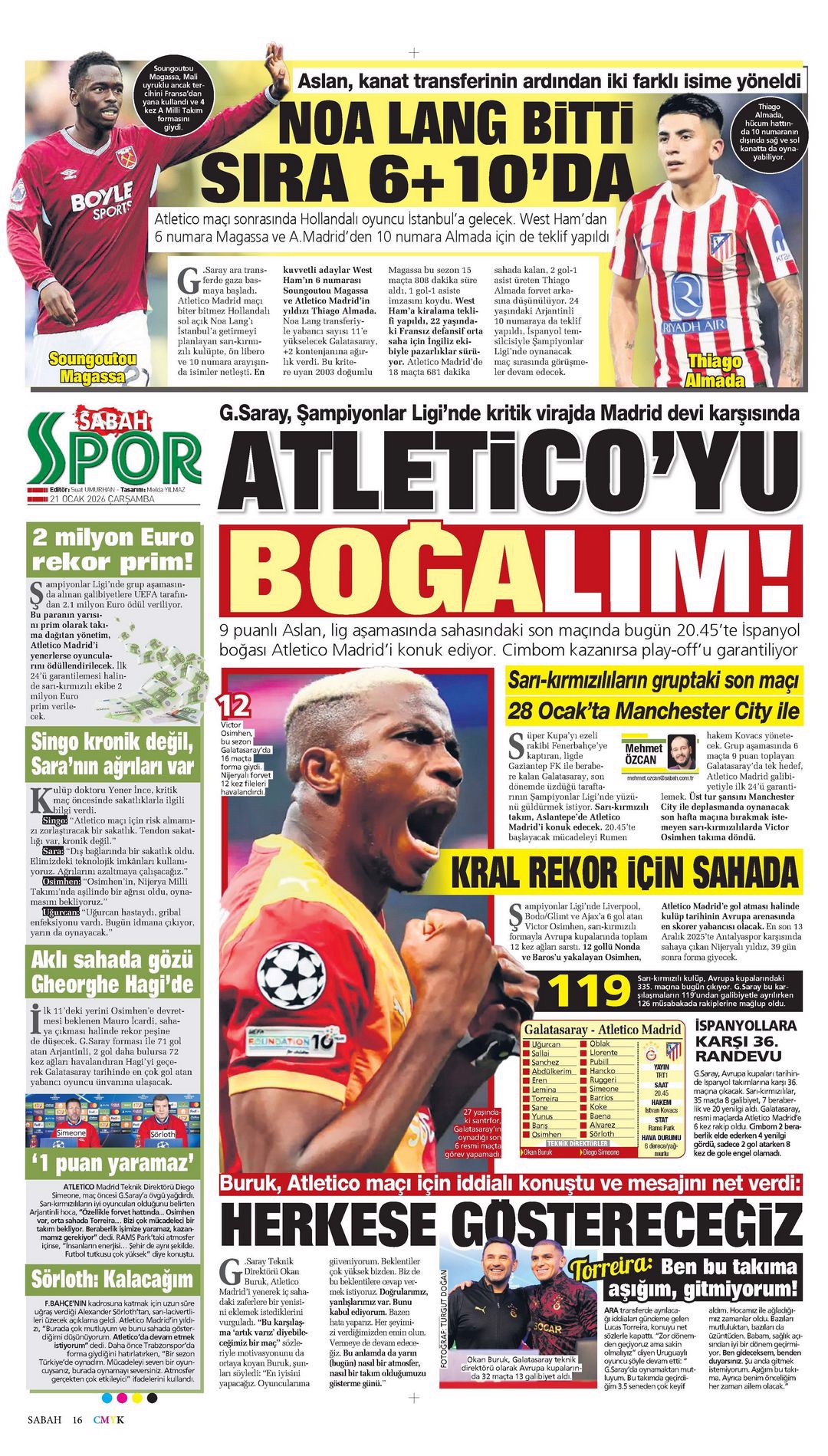 Osimhen kararı çıldırttı! Spor basını bugün ne yazdı? (16 Ocak)
