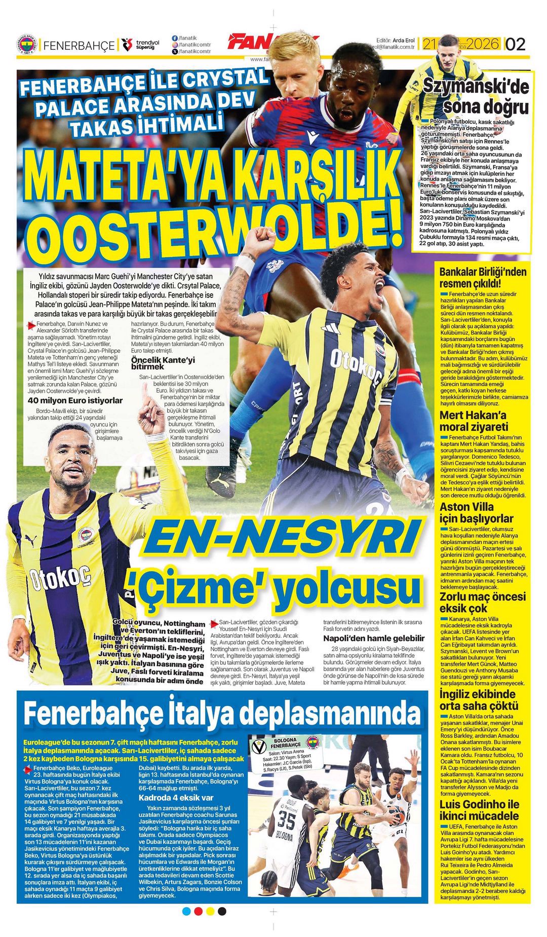 Fener Kanter içinde! Spor basını bugün ne yazdı? (17 Ocak)