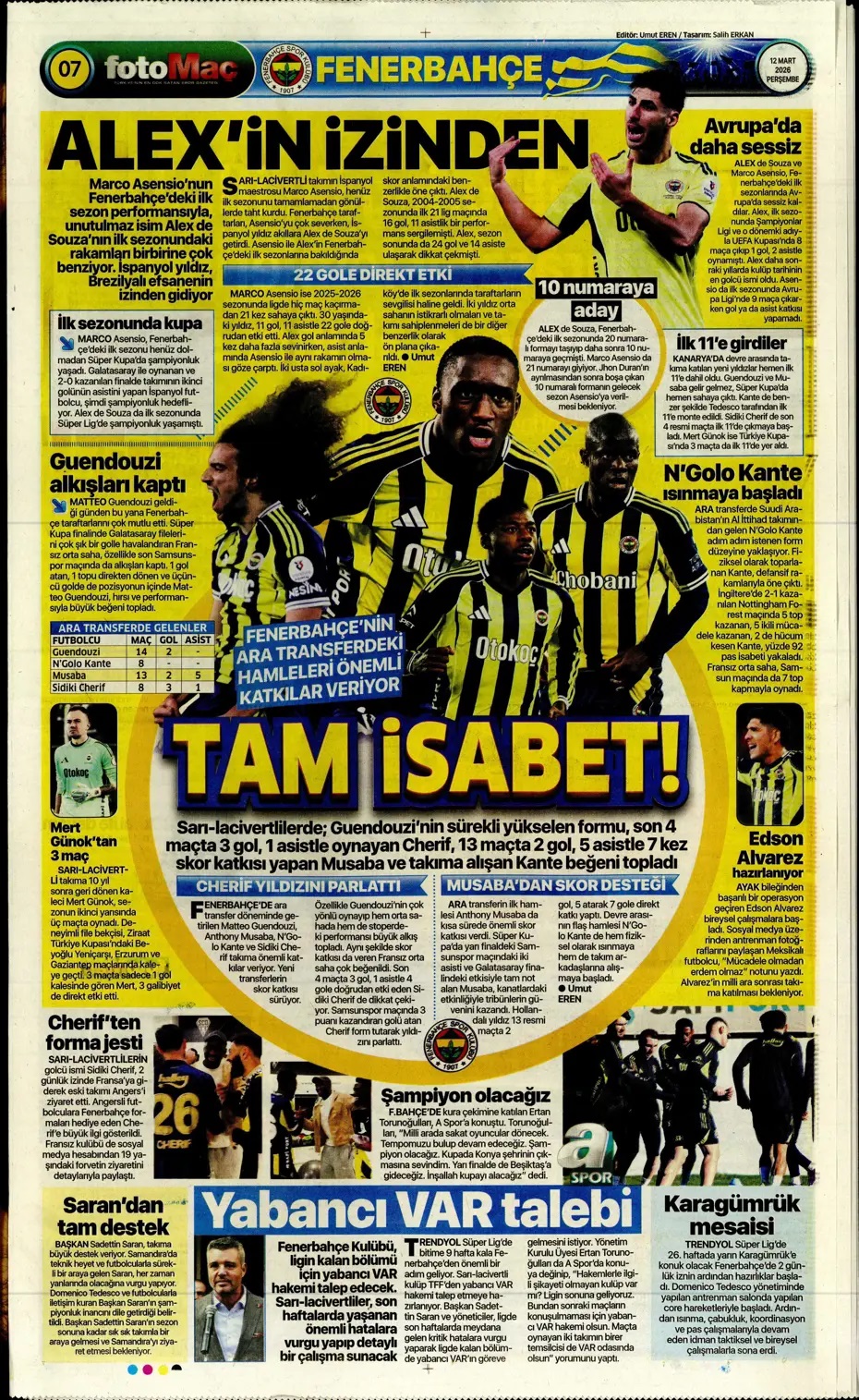 10'dan iyisi yok! Spor basını bugün ne yazdı? (12 Mart)