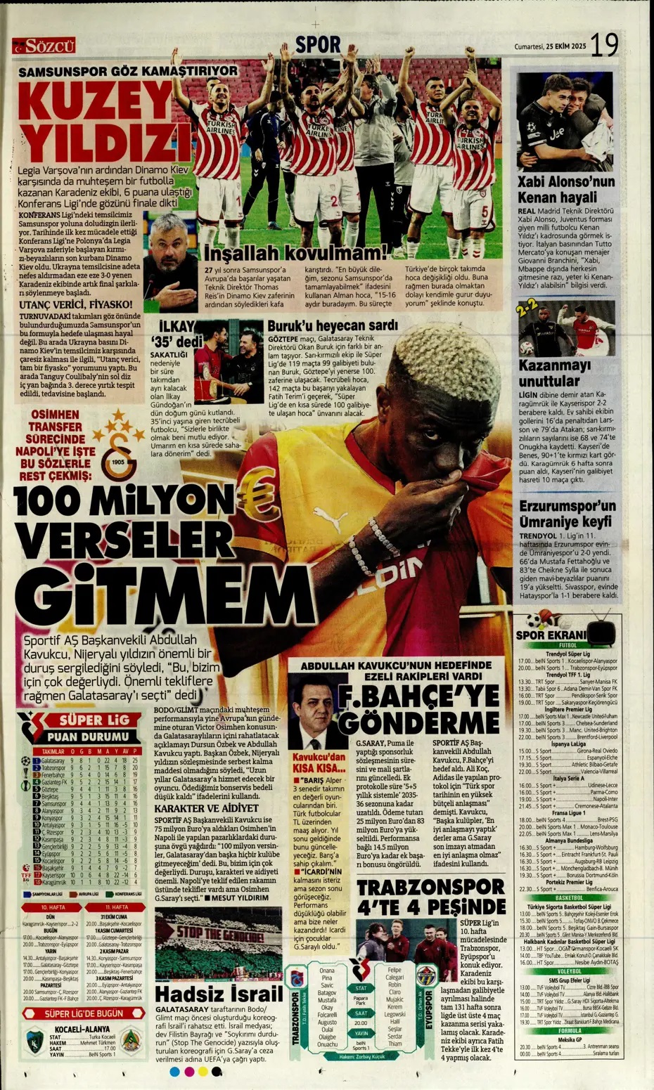 100 milyon verseler gitmem! Spor basını bugün ne yazdı? (25 Ekim)
