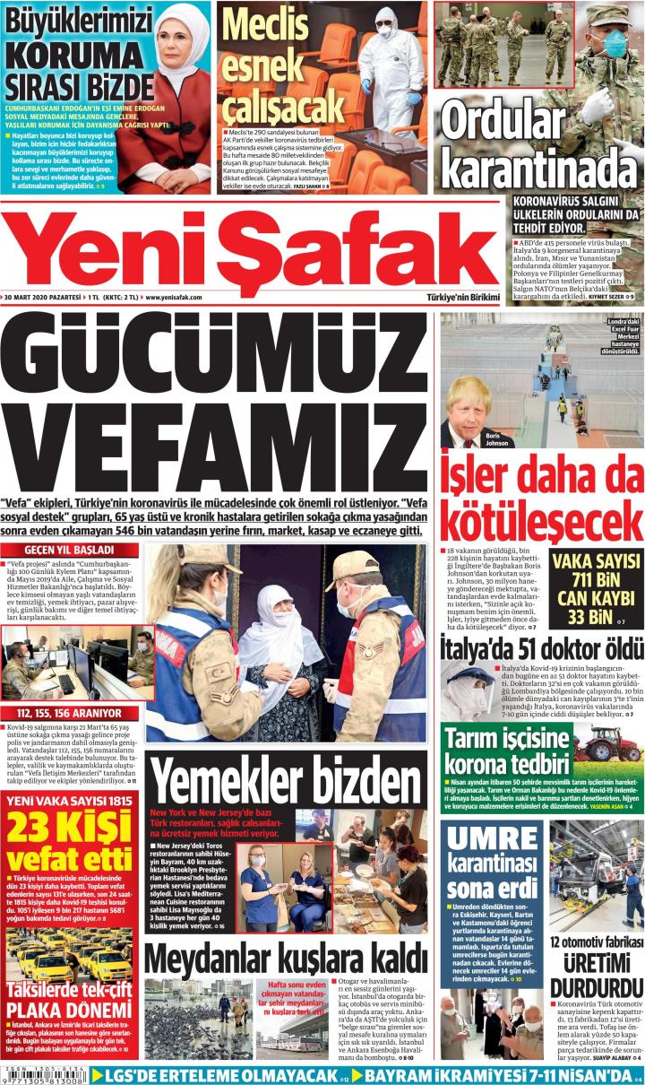 30 Mart 2020 gazete manşetleri