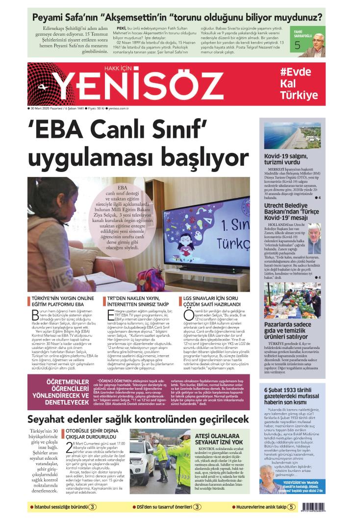 30 Mart 2020 gazete manşetleri