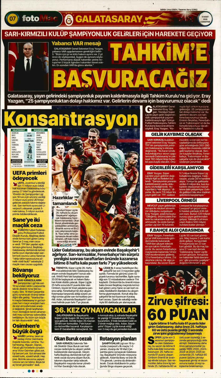 Haydi Cimbom bir dha! Spor basını bugün ne yazdı? (10 Mart)