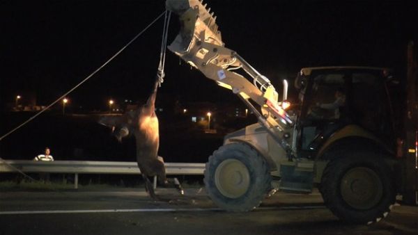 Tekirdağ'ın Çerkezköy ilçesinde minibüsün çarptığı yaralı at ölüme terk edildi. Roman vatandaşların uyutulmasına karşı çıkması üzerine belediye ekipleri yaralı atı bariyerlerin diğer tarafına bırakarak olay yerinden ayrıldı. |