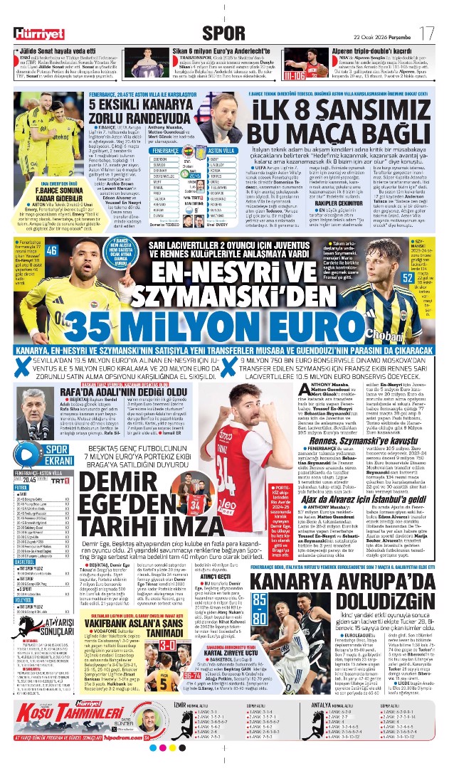 Fener Kanter içinde! Spor basını bugün ne yazdı? (17 Ocak)