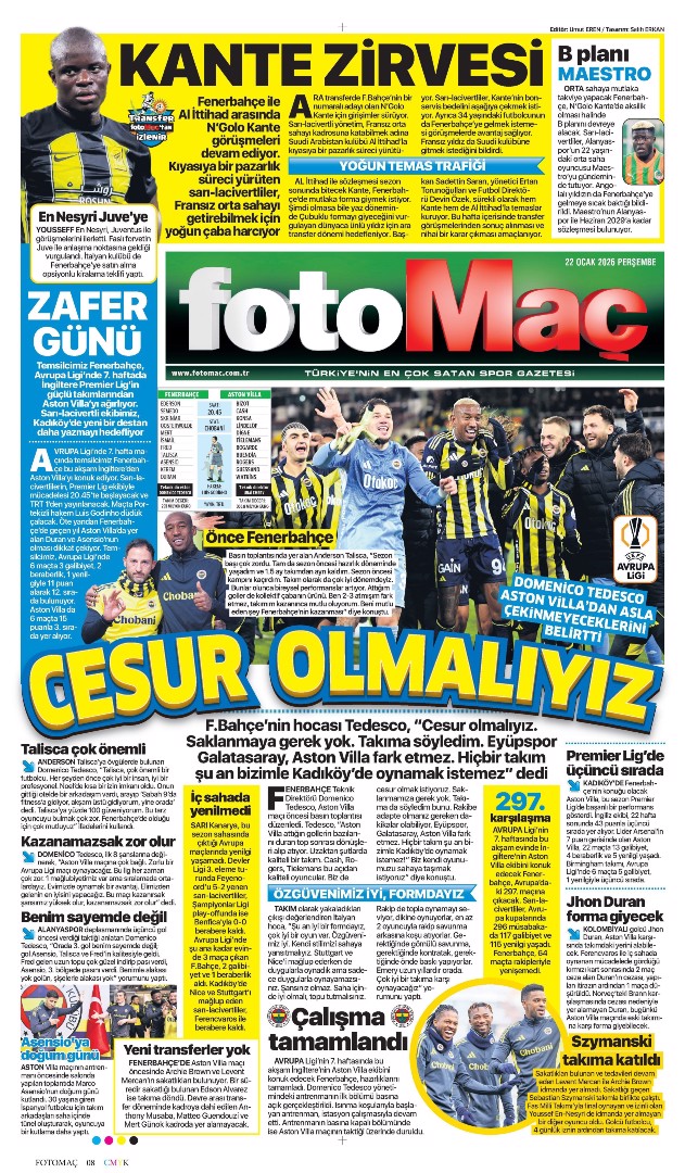 Tedesco: Savaştık! Spor basını bugün ne yazdı? (23 Ocak)