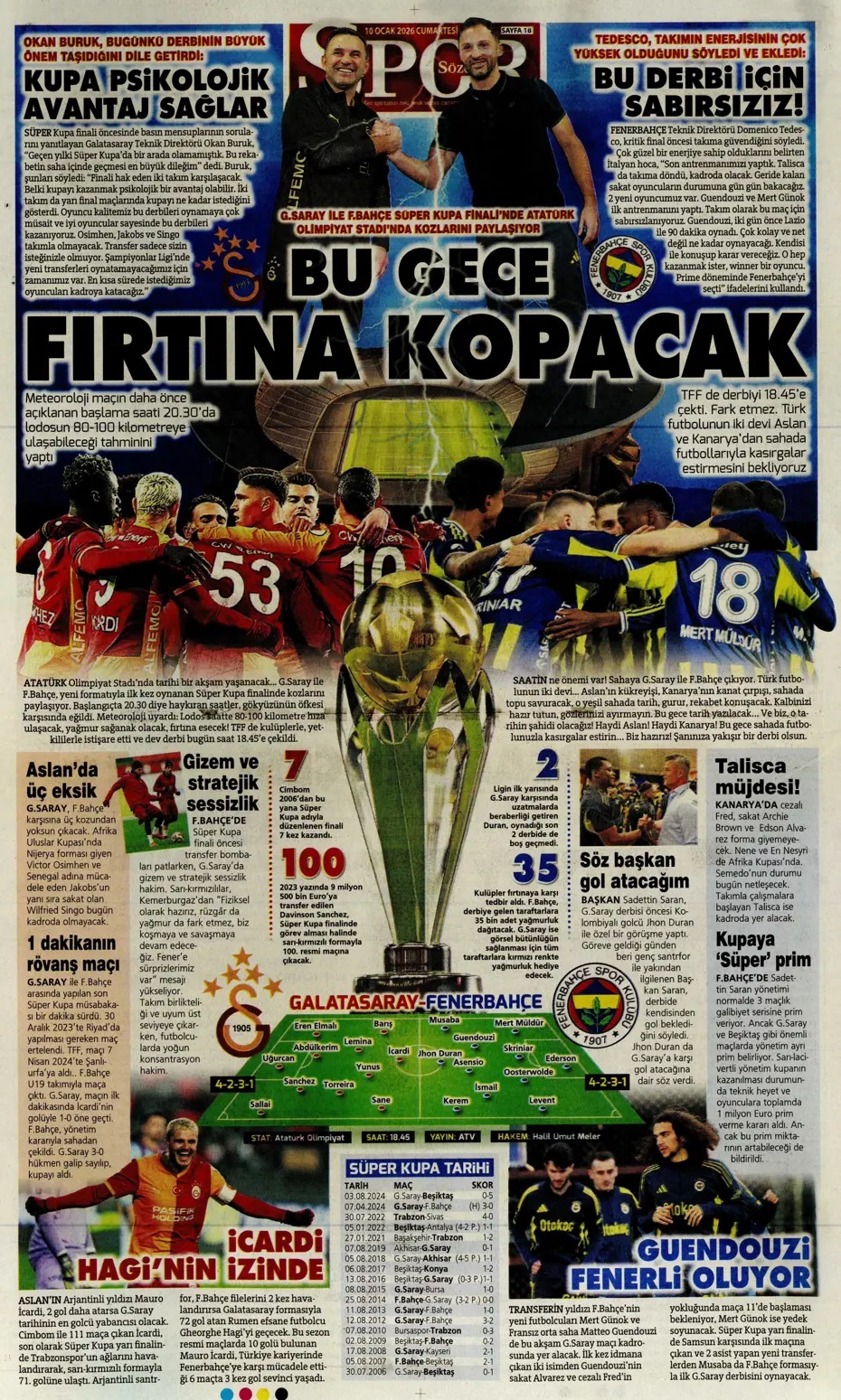 Bu gece fırtına kopacak! Spor basını bugün ne yazdı? (10 Ocak)