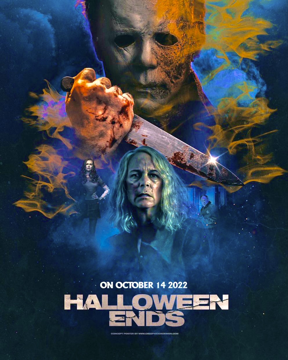 Cadılar Bayramı Sona Eriyor'da, maskeli katil Michael Myers ve Laurie Strode arasındaki savaş sona eriyor.