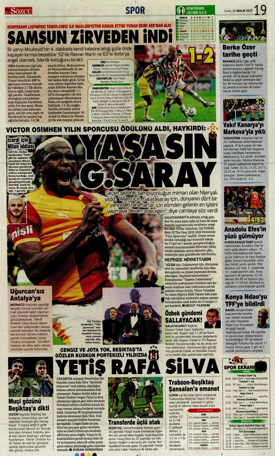 Bunun adı resital! Spor basını bugün ne yazdı? (12 Aralık)