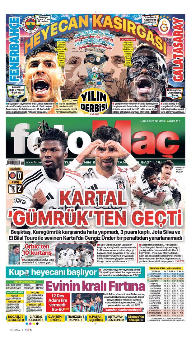 Bu derbi farklı! Spor basını bugün ne yazdı? (29 Kasım)