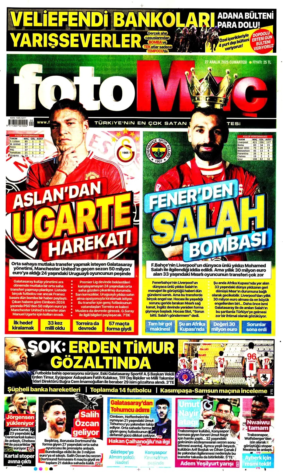 Erden Timur'a gözaltı! Spor basını bugün ne yazdı? (27 Aralık)