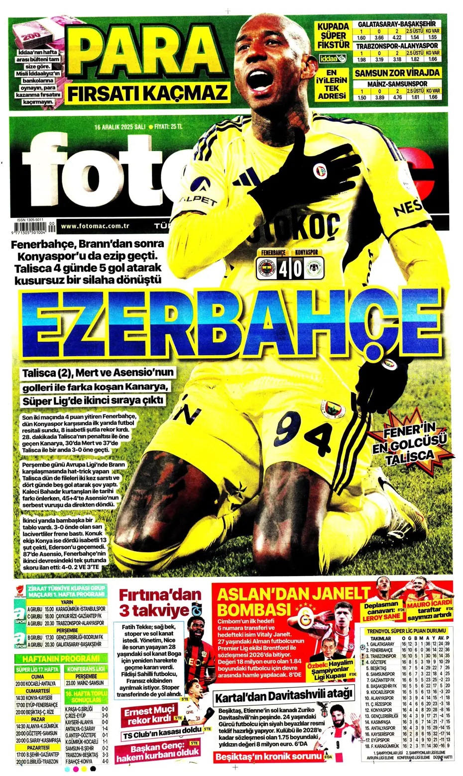 Fener 4 köşe! Spor basını bugün ne yazdı? (16 Aralık)