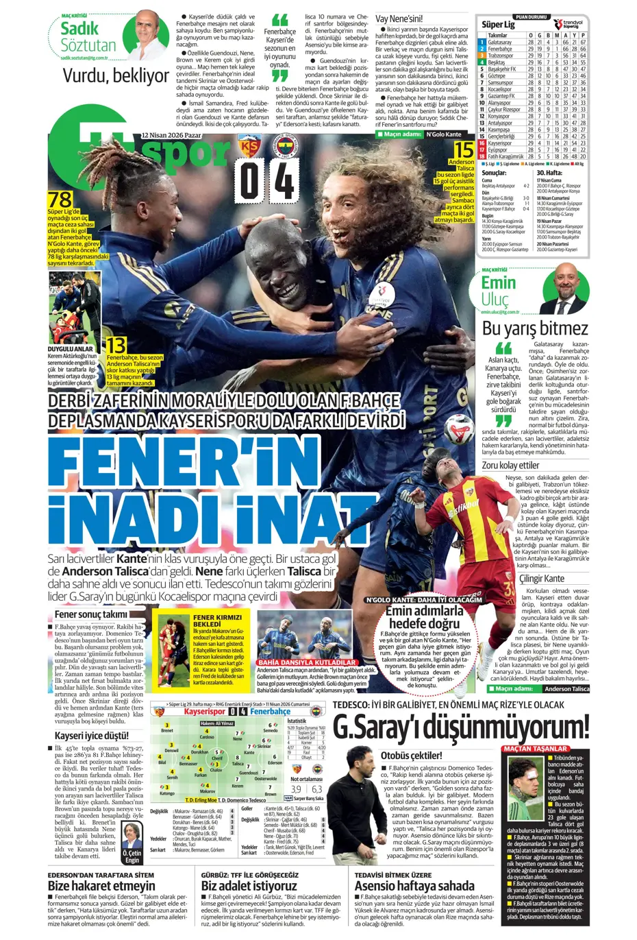 Zirvede yüksek gerilim! Spor basını bugün ne yazdı? (4 Nisan)