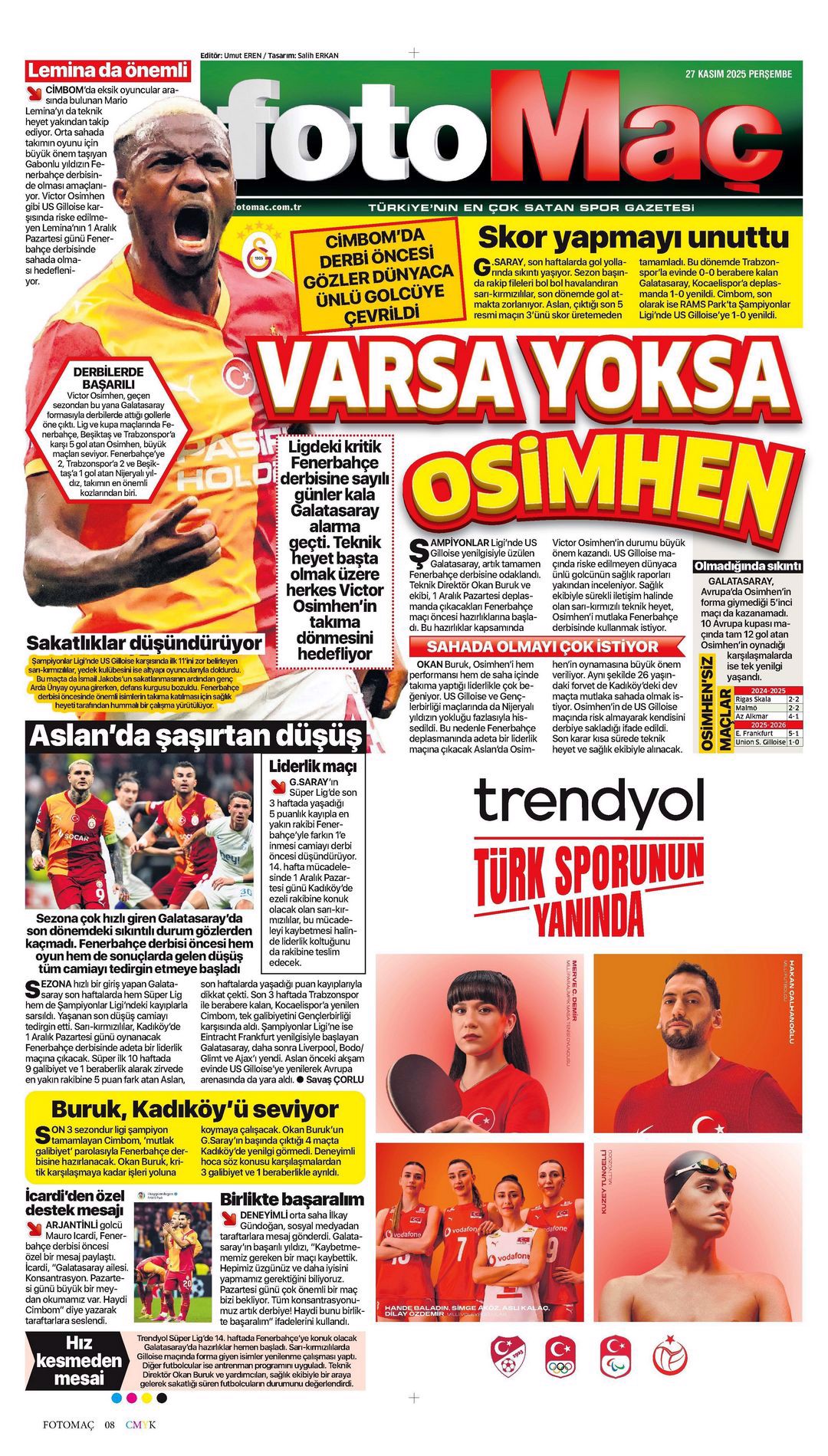 Aslan destan peşinde! Spor basını bugün ne yazdı? (25 Kasım)