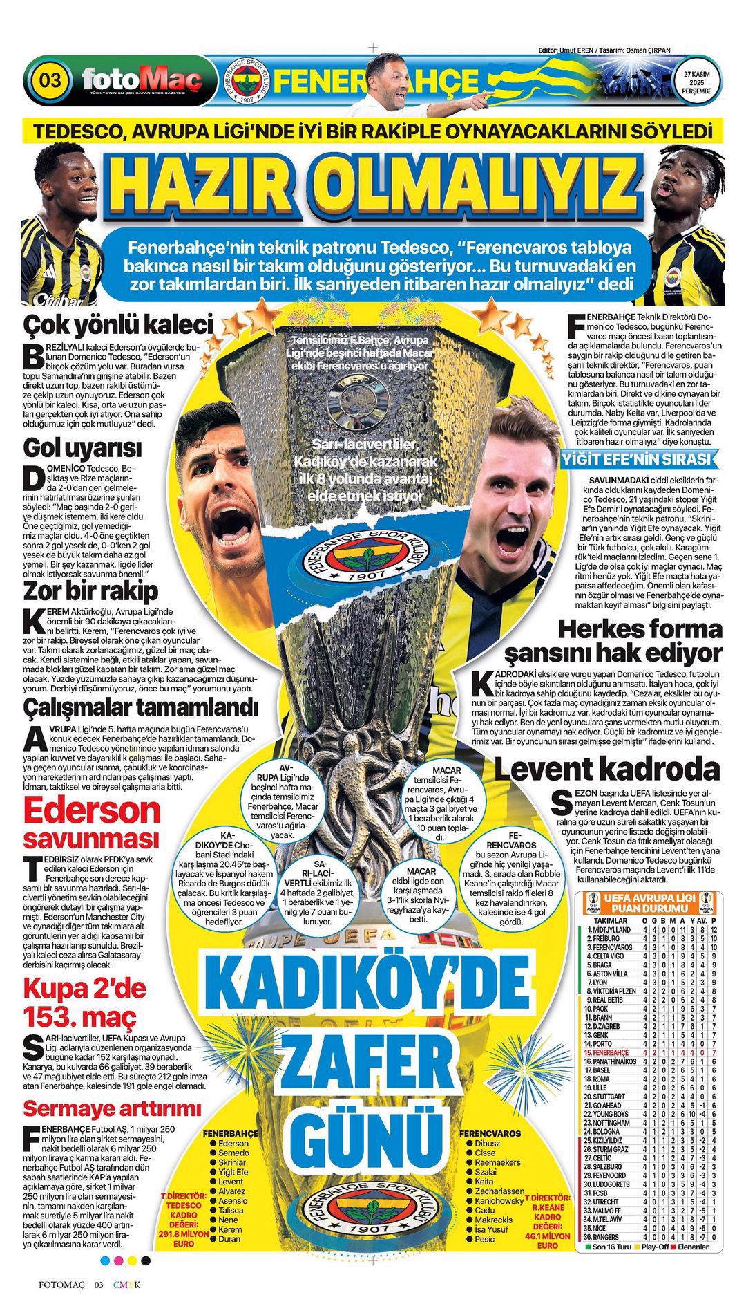 Fenerbahçe'de ilk hedef Avrupa | Spor manşetleri