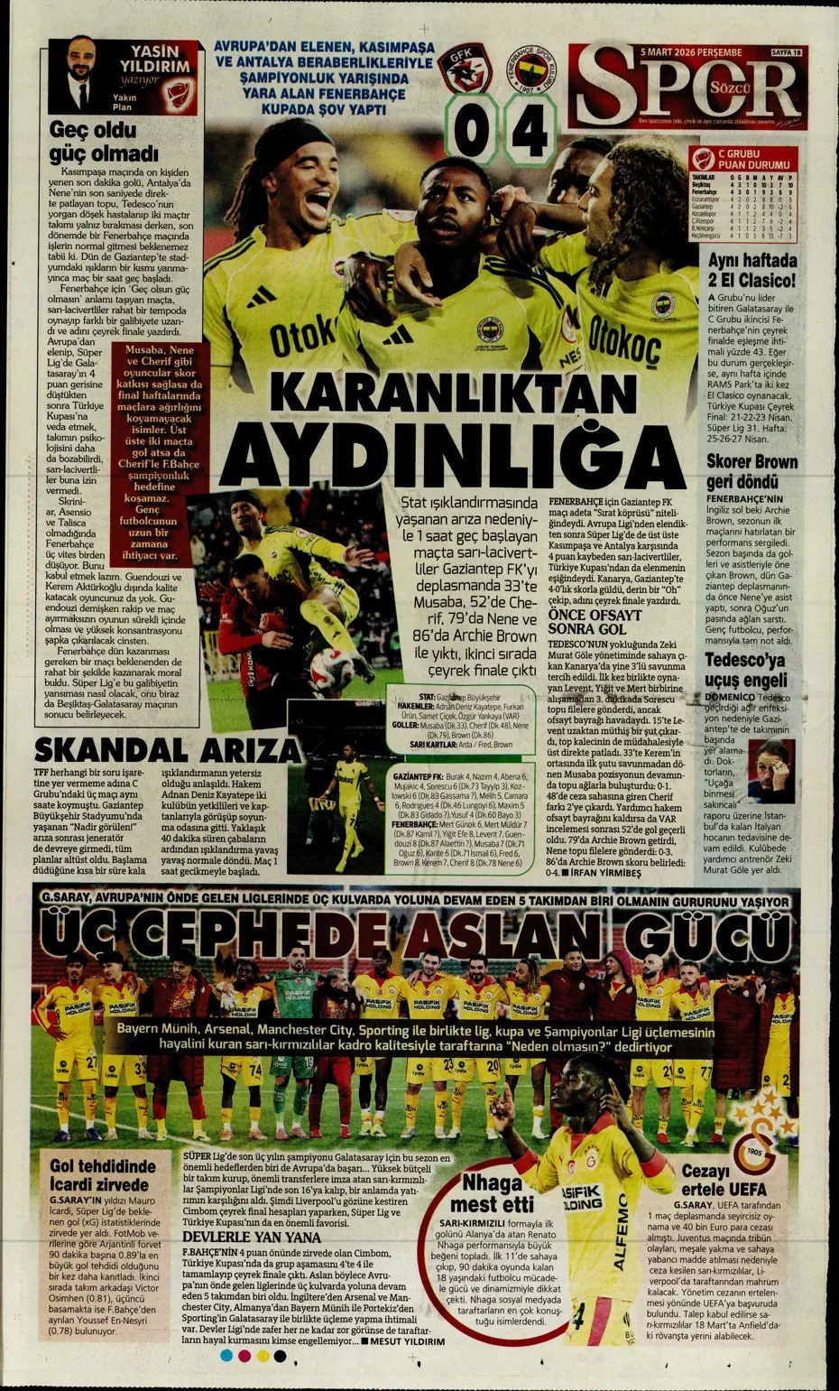 Fenerbahçe resitali! Spor basını bugün ne yazdı? (5 Mart)
