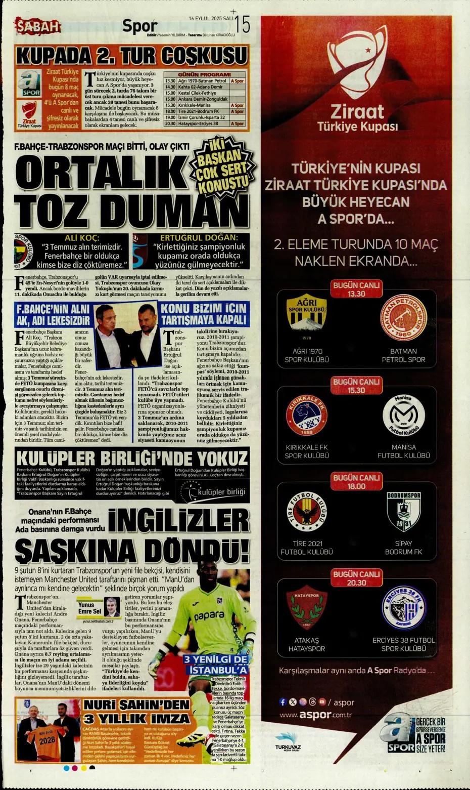 Fener 4 köşe! Spor basını bugün ne yazdı? (16 Aralık)