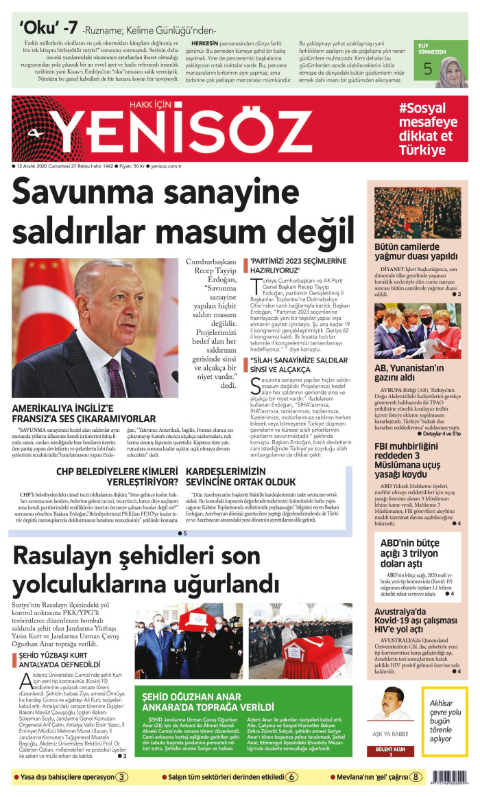 Gazeteler bugün ne yazdı? (12 Aralık)