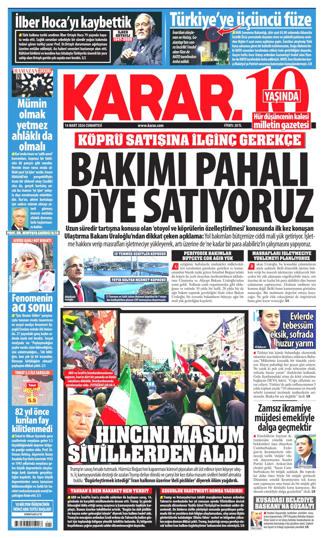 Gazeteler bugün ne yazdı? (14 Mart)