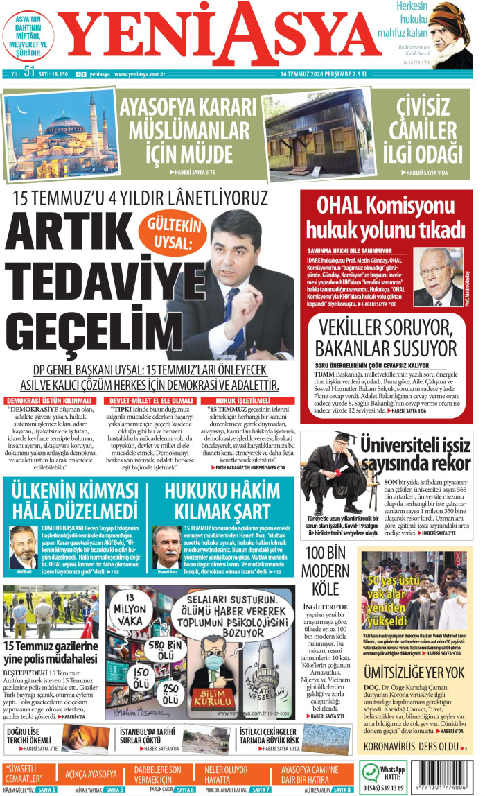 Gazeteler bugün ne yazdı? (16 Temmuz)