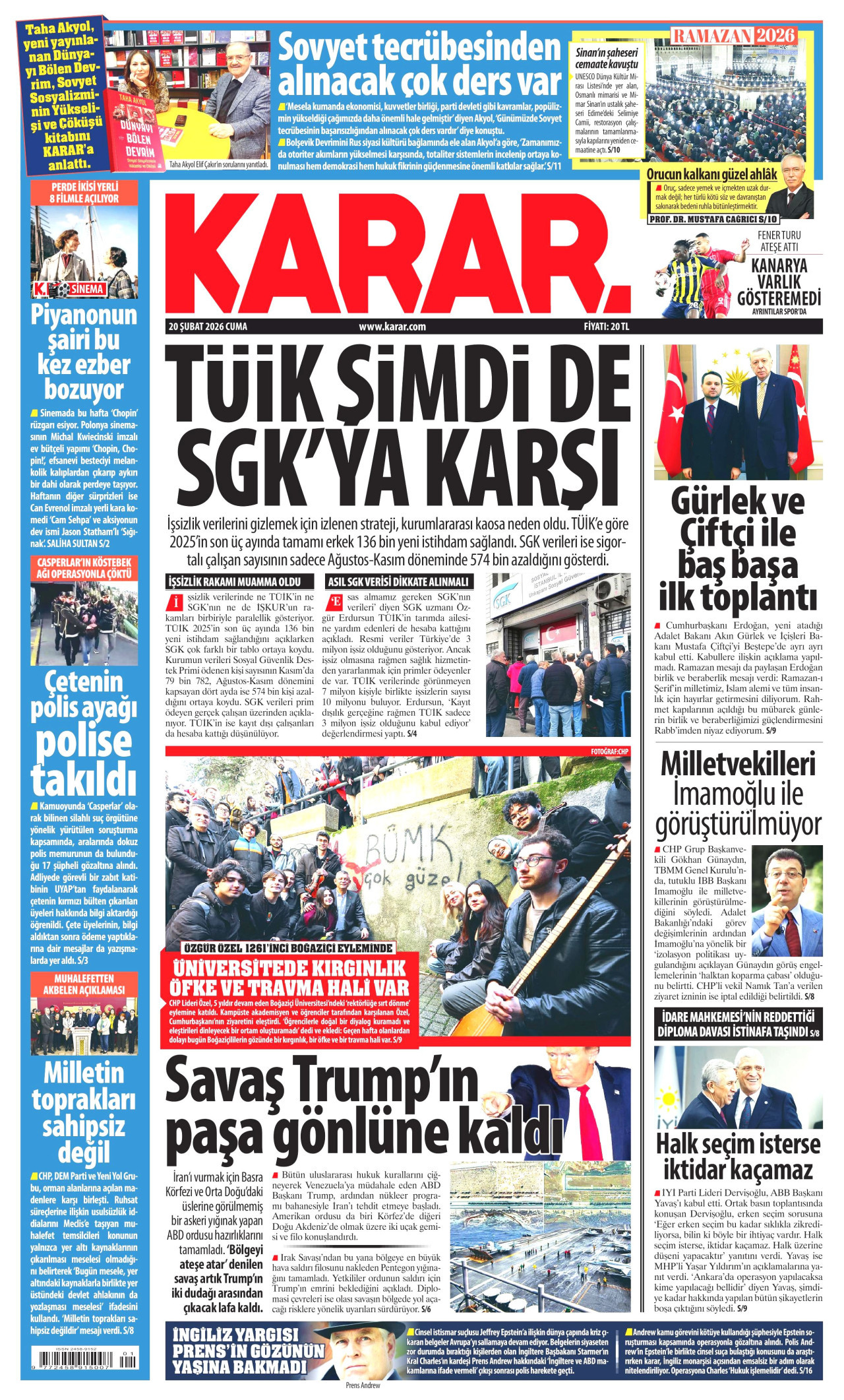 Gazeteler bugün ne yazdı? (20 Şubat)