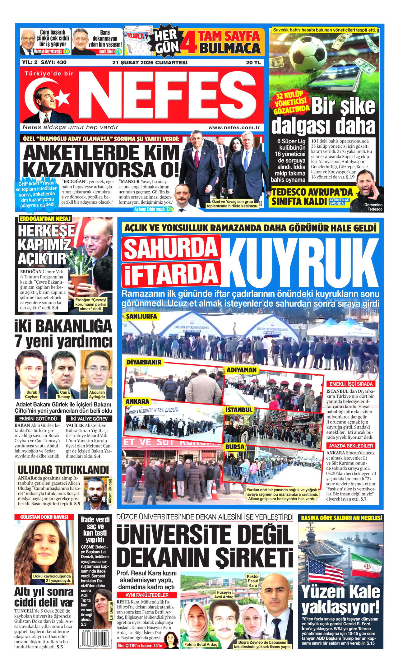 Gazeteler bugün ne yazdı? (20 Şubat)