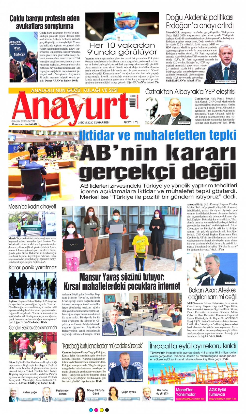 Gazeteler bugün ne yazdı? (3 Ekim)