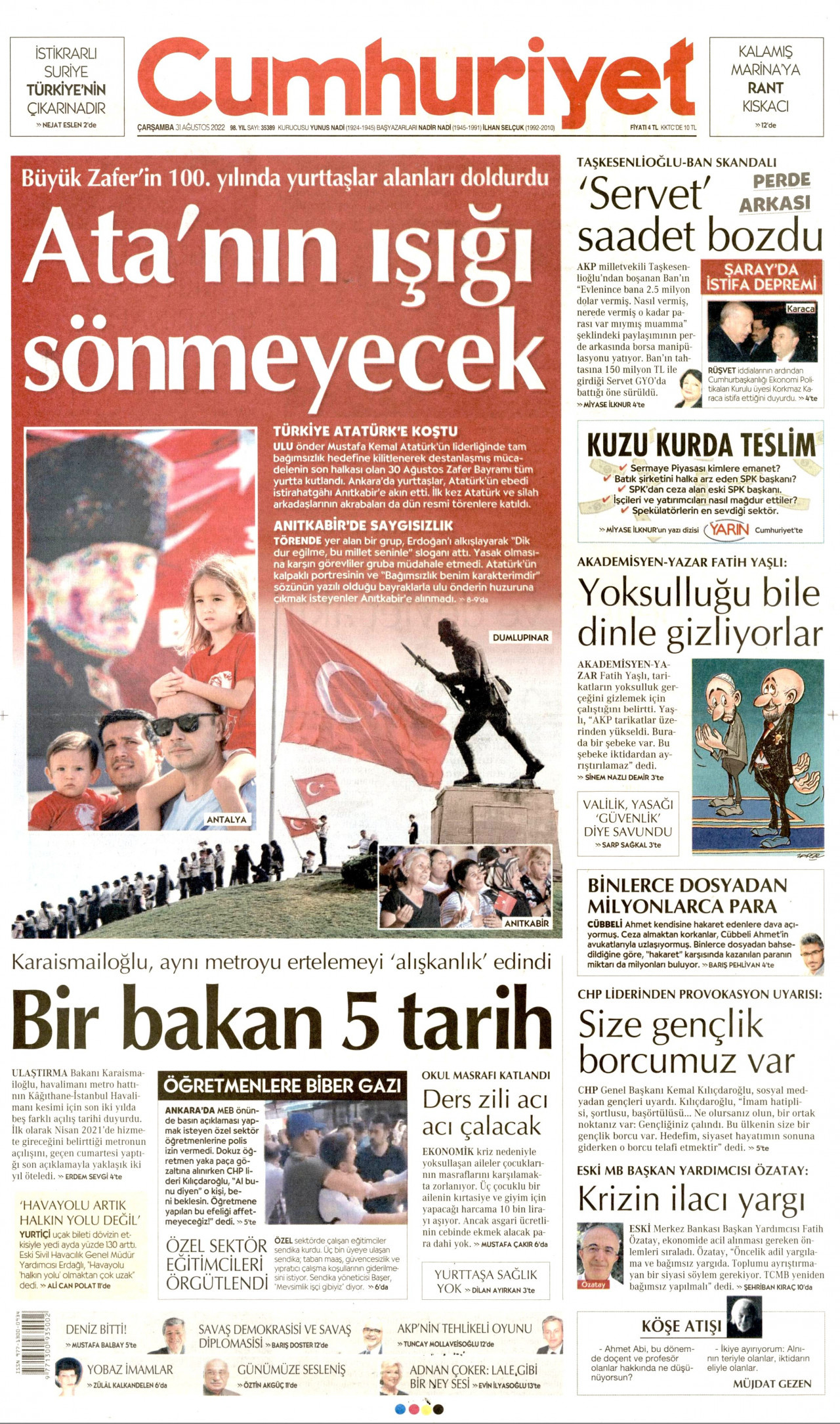 Gazeteler bugün ne yazdı? (31 Ağustos)