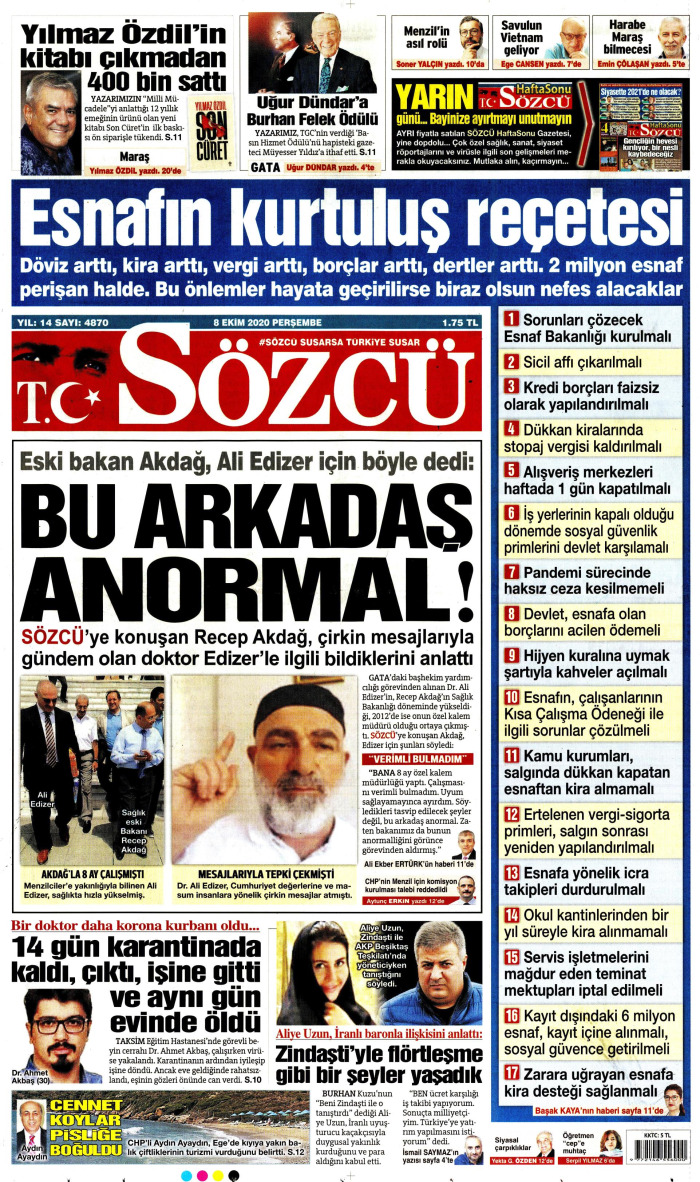 Gazeteler bugün ne yazdı? (8 Ekim)