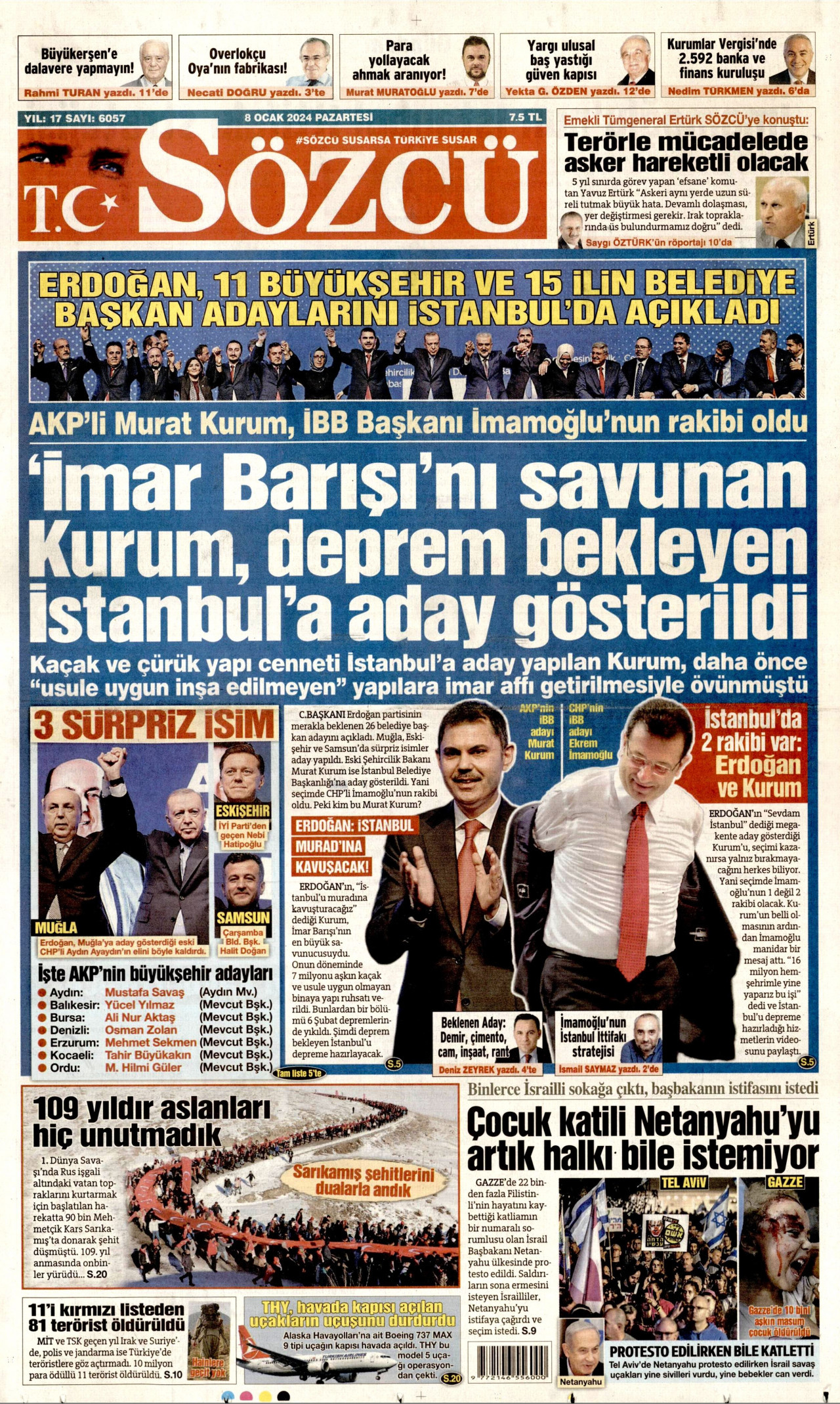 Gazeteler bugün ne yazdı? (8 Ocak)