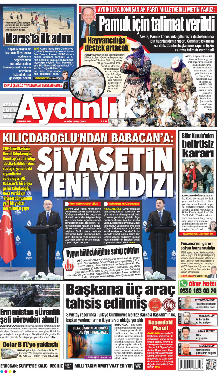Gazeteler bugün ne yazdı? (9 Ekim)