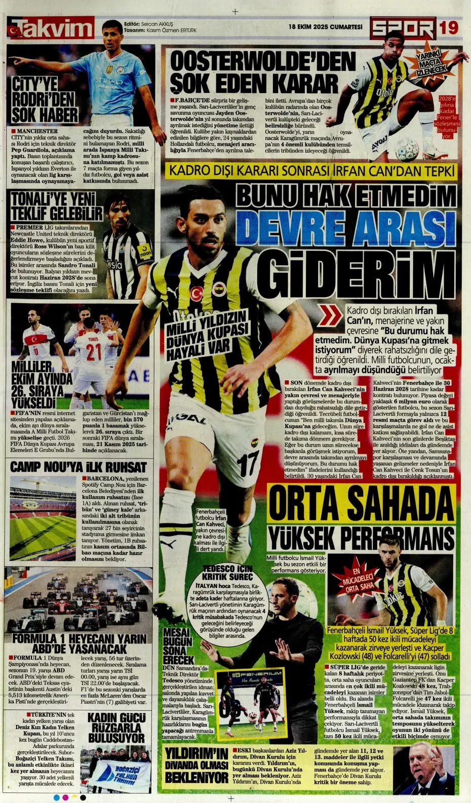 İrfan Can Kahveci: Devre arası giderim! Spor basını bugün ne yazdı? (18 Ekim)