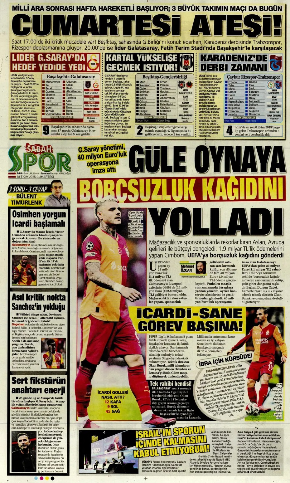 İrfan Can Kahveci: Devre arası giderim! Spor basını bugün ne yazdı? (18 Ekim)