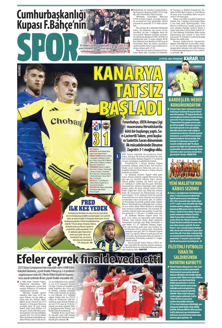 Kanarya tatsız başladı! Spor basını bugün ne yazdı? (25 Eylül)