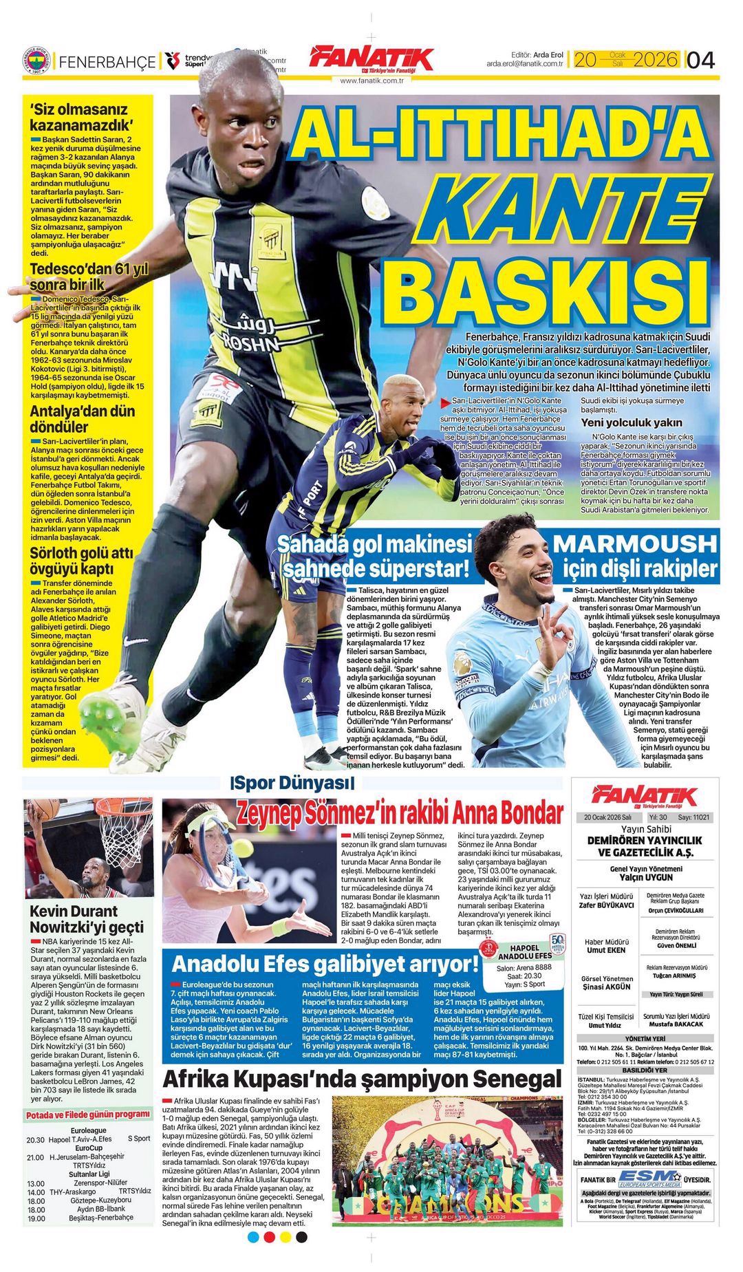 Fener Kanter içinde! Spor basını bugün ne yazdı? (17 Ocak)