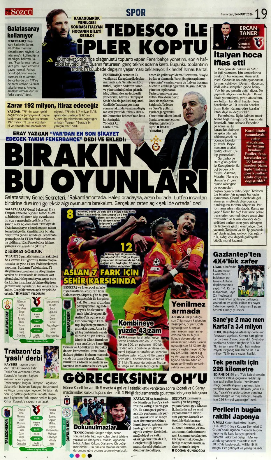 Haydi Cimbom bir dha! Spor basını bugün ne yazdı? (10 Mart)