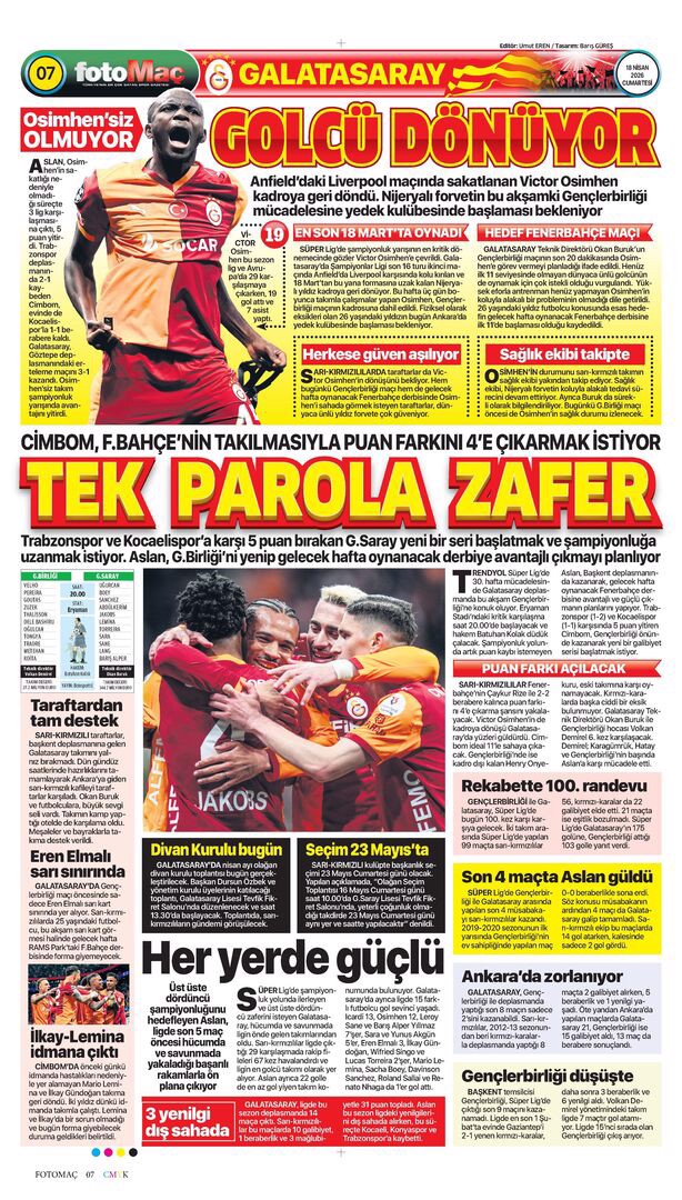 Nisanda lider Mayısta zafer! Spor basını bugün ne yazdı? (16 Nisan)