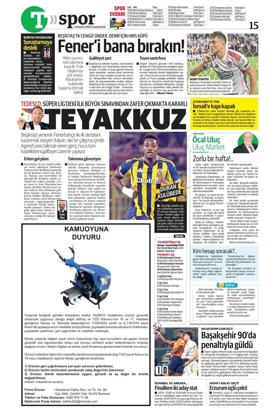 Mevzubahis futbolsa! Spor basını bugün ne yazdı? (1 Kasım)