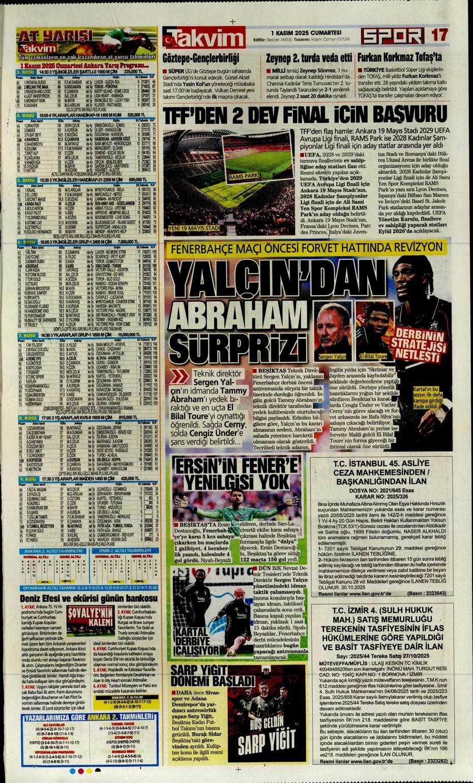 Mevzubahis futbolsa! Spor basını bugün ne yazdı? (1 Kasım)