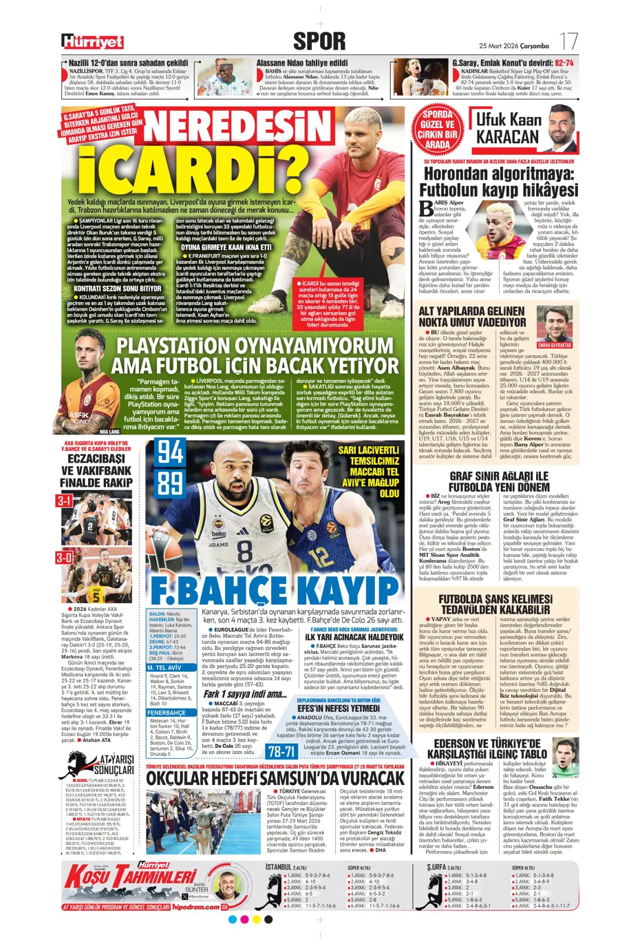 Aslan koptu gidiyor! Spor basını bugün ne yazdı? (17 Mart)
