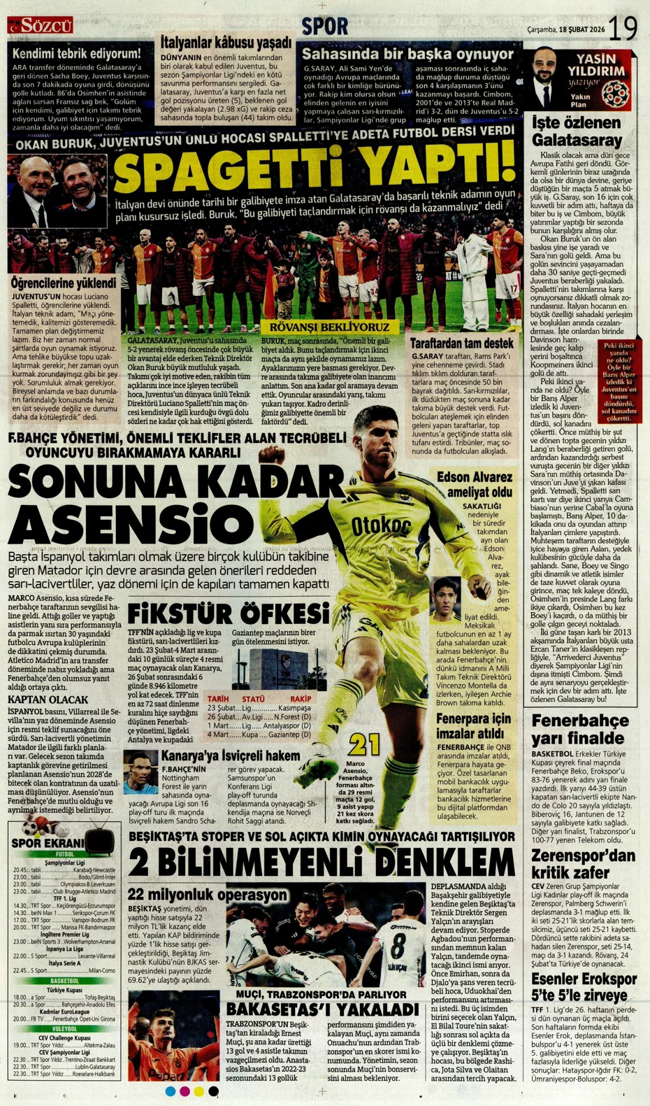 Bekle beni İtalya! Spor basını bugün ne yazdı? (17 Şubat)