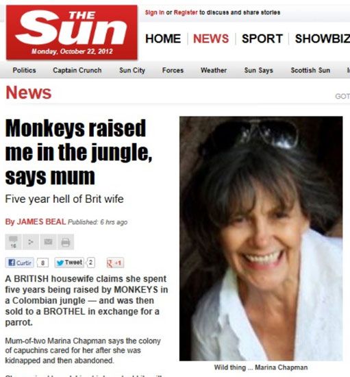 Kolombiya asıllı bir İngiliz ev hanımının inanılmaz hikayesi dünya basınına konu oldu. Kaynak : http://www.haber3.com/onu-maymunlar-buyuttu-foto-galerisi-25460.htm#ixzz2VoQcpY62