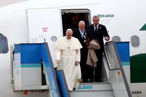 Franciscus ve beraberindeki heyet, müzenin ana giriş kapısında, Kültür ve Turizm Bakanlığı Müsteşarı Haluk Dursun, Ayasofya Müzesi Müdürü Hayrullah Cengiz ve diğer ilgililer tarafından karşılandı.