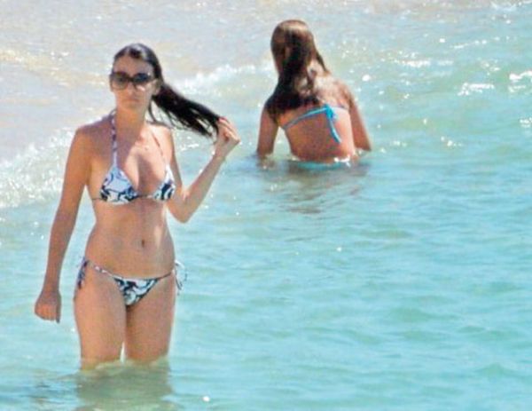 Sosyetenin genç temsilcilerinden Neslişah Alkoçlar, siyah-beyaz renkli ve ipli bikinisiyle Çeşme sahillerinde boy göstermişti.