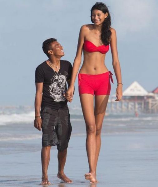 2 metre 6 santimlik boyuyla dünyanın en uzun genç kızı olan Elisany Silva'nın sevgilisi Francinaldo'nun boyu sadece 1 metre 62 santim...