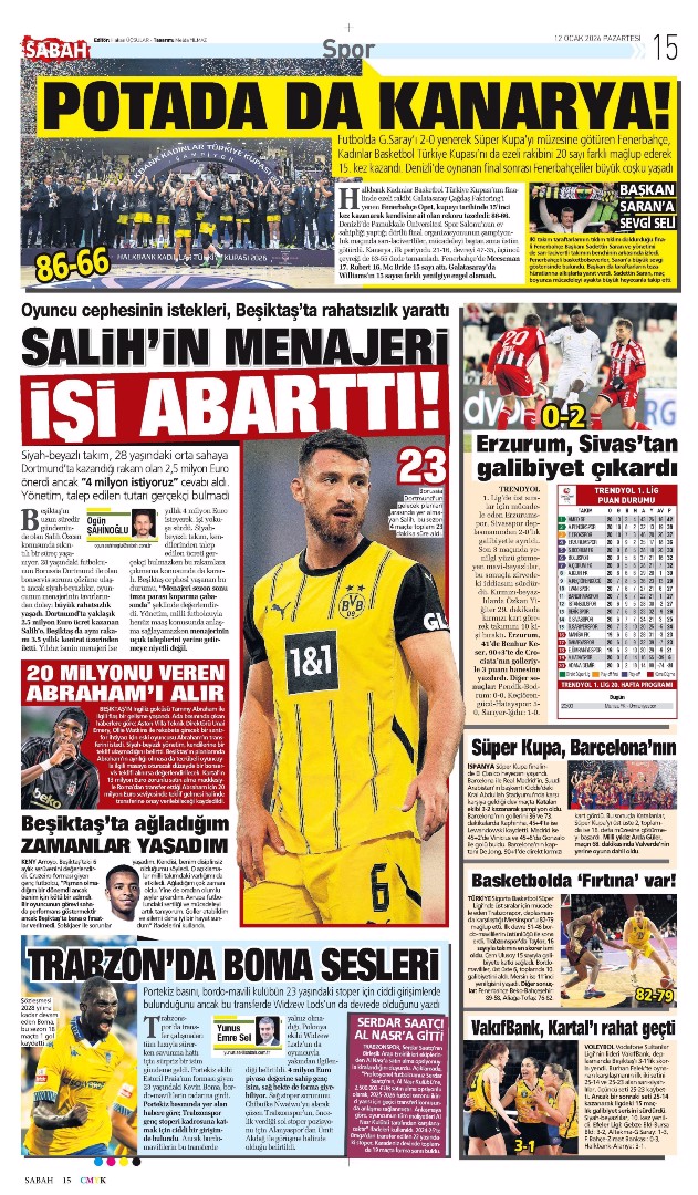 Fener Kanter içinde! Spor basını bugün ne yazdı? (17 Ocak)