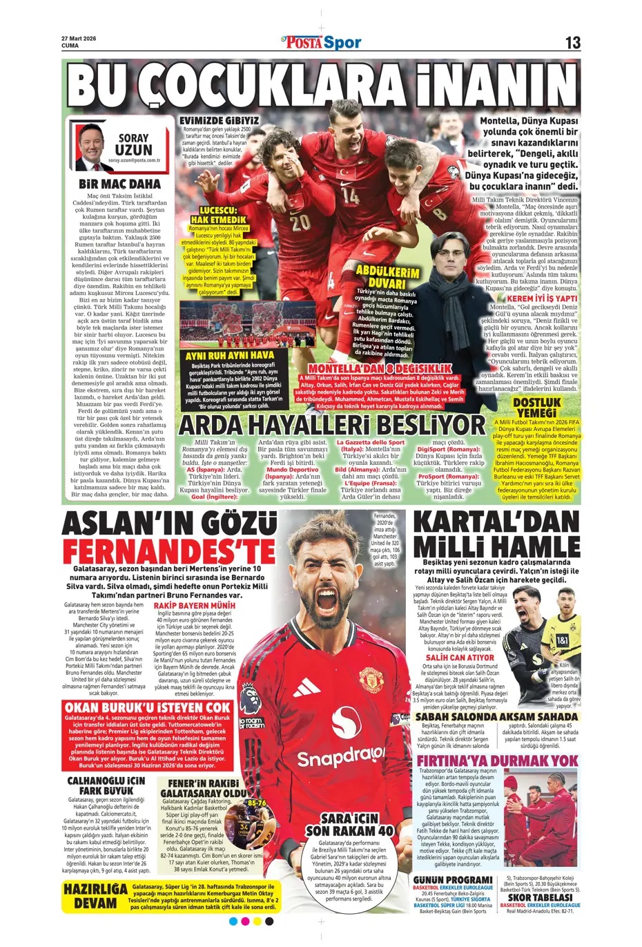 Sıradaki gelsin! Spor basını bugün ne yazdı? (27 Mart)