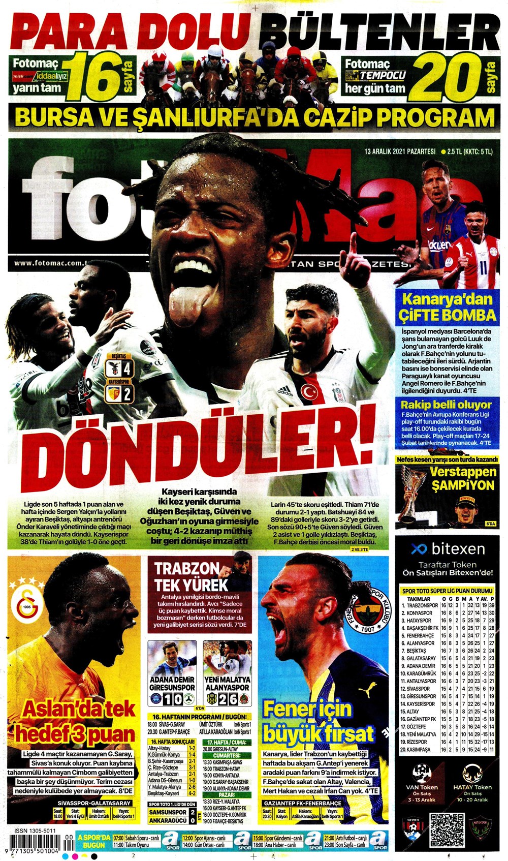 Tek hedef 3 puan! Spor basını bugün ne yazdı? (13 Aralık)
