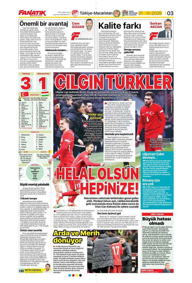 Süper güç Türkiye! Spor basını bugün ne yazdı? (21 Mart)
